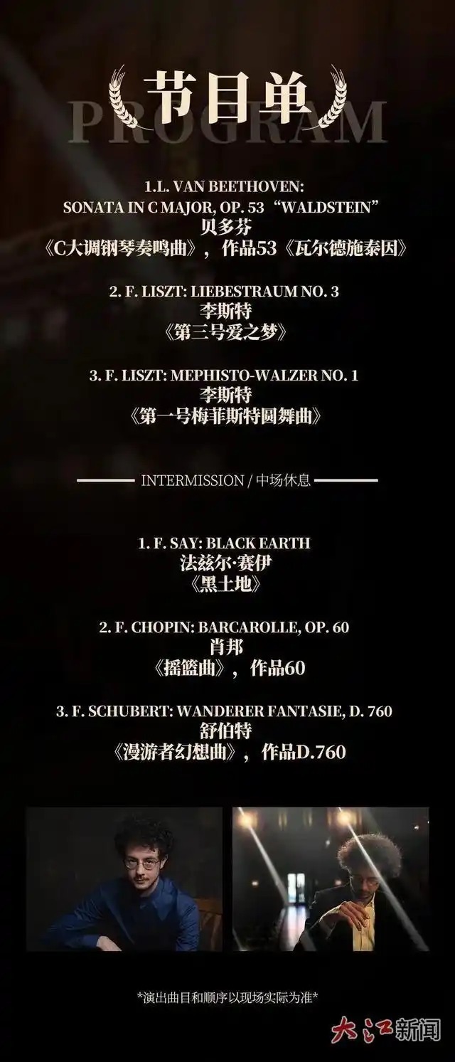 大江新闻讯 全媒体记者袁子怡报道:指尖琴音婉转悠扬,黑白琴键间奏响经典华章提供炒股配资开户,三度荣膺国际古典音乐奖的土耳其钢琴诗人赞恩・达卡莫,携 “聆听巨匠” 钢琴音乐会倾情献演,以诗意琴音演绎传世经典乐章,每一段旋律都直击心灵,每一次触键都尽显匠心,闭眼聆听是沉浸式艺术盛宴,抬手抓拍皆是大师风采,音乐现场,氛围感直接拉满!